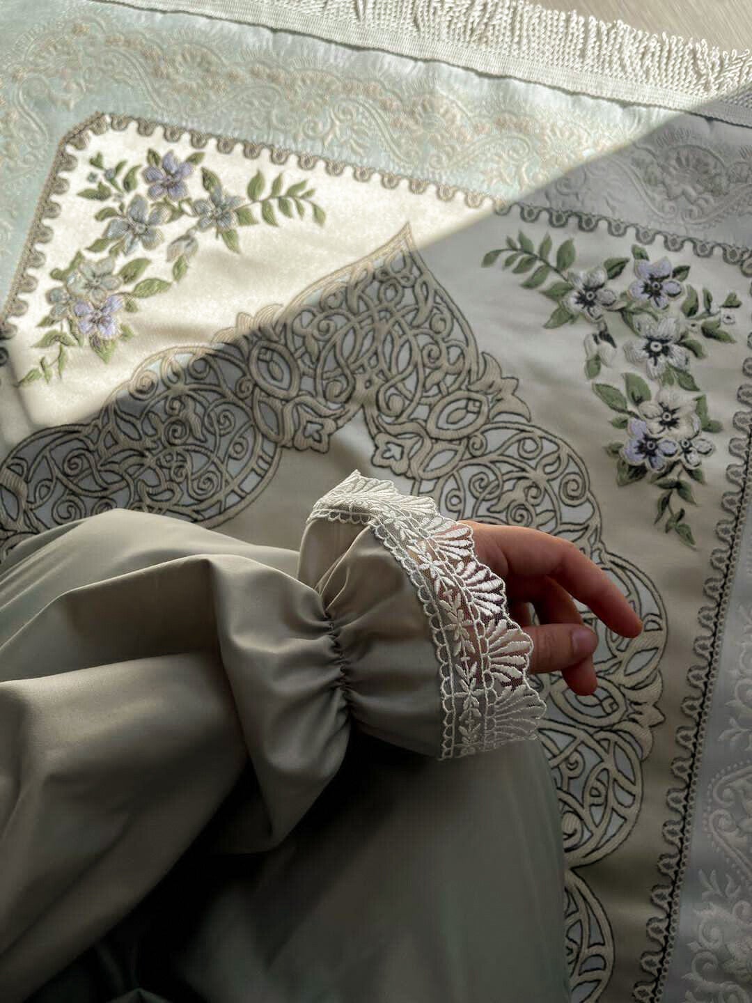 3. Sicheres Ärmeldesign: Die Ärmel sind mit einem Gummiband versehen, um sicherzustellen, dass sie während des Gebets an Ort und Stelle bleiben. Das Gummiband ermöglicht zudem eine einfache Waschung vor dem Gebet.