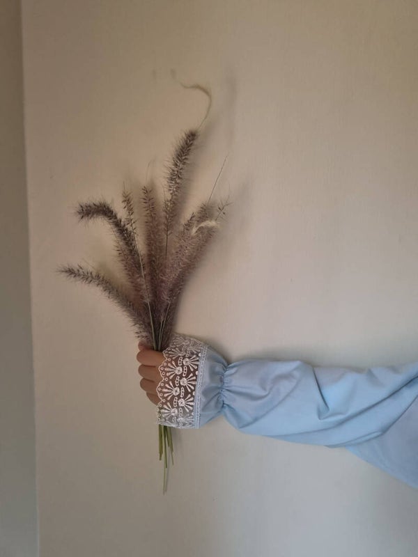 The sleeves have an elastic band which make sure they stay put during prayer and make ensure you can perform ablution before prayer easily.