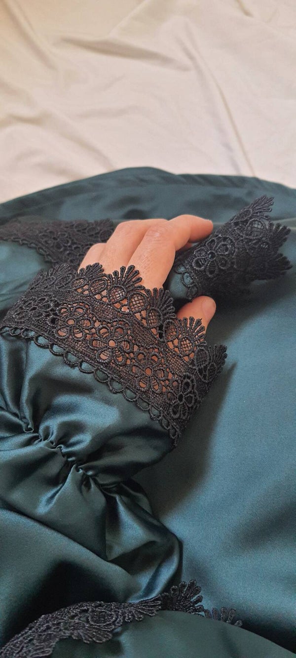 The dress is made of luxury satin fabric and has beautiful black lace or white lace.