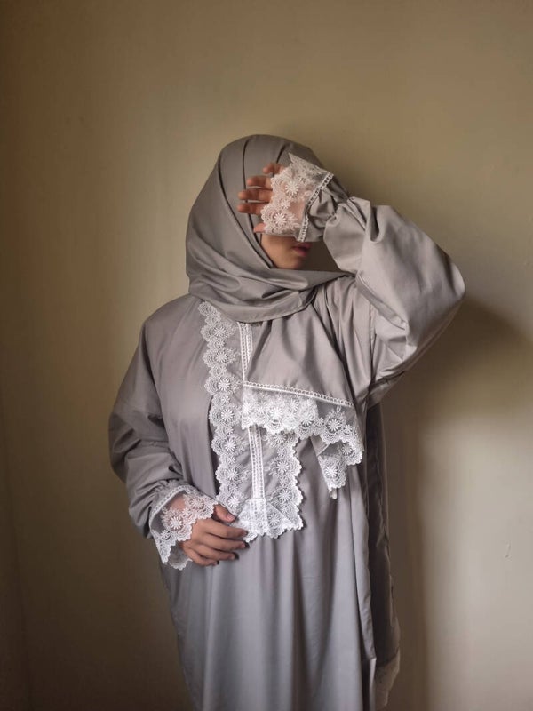 The dress comes with a partly attached matching hijaab as shown on the picture. The hijaab is around 180 cm long and you can wear it any way and style you prefer.