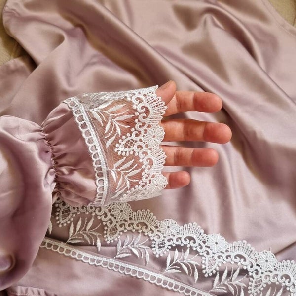 New Lace ! Soft Mauve Satin Prayer Dress
